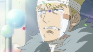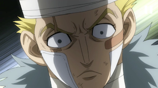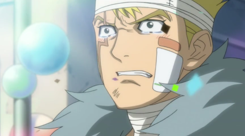 At the start of the episode Laxus is left wondering why Fairy Law didn’t work. Freed shows up and explains that deep down Laxus never considered any of them his enemies, no matter how much he tried to tell himself that. The first time I read this in the manga I was a little iffy about the whole idea of redeeming him like this, since he has been an unmitigated jackass the entire arc and in every appearance before this, but if there’s one thing Mashima is good at it’s tugging at your emotional heartstrings, while at the same time distracting you from the fact that his plot development and characterization could use some work in some areas.