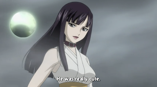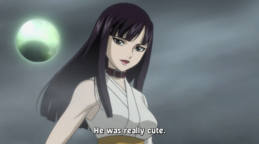 Talking to someone in her crystal ball. She reveals that Jellal wasn’t being controlled by the spirit of Zeref, he was in fact under Ultear’s spell. Apparently Ultear has been evil since childhood. She calls the person she is talking to Master Hades, so we know he must run the local homeless shelter. Thanks to Jellal they acquired one of the keys needed to unlock the seal. The scene switches to Jellal floating someplace blue, and I hear waves. It kind of reminds me of Erza’s near death experience, so it seems to be foreshadowing a return for him? We’ll see where the anime goes with this.