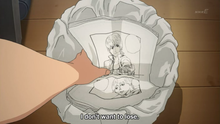Mashiro tells Takagi about the first time he met Azuki, way back when they were in elementary school. Then the two of them work on their manga, Two Earths, a story about how our world isn’t the real world, but an artificial world created by the real world and populated by clones they use as guinea pigs. Thanks to the research done on the second world, the real world lives in a golden age of peace.