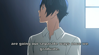 But she gives him her email address. Later he’s still worrying about whether they’ll stay together, and goes to her house. He’s about to call her, when Azuki gets a call from Miyoshi, and Mashiro instead puts his phone away and walks back to his home. The music in this scene is notable, before I haven’t really been impressed by the score, but then again there hasn’t been any need since this anime isn’t exactly one that is going to rely on great music to emphasize fight scenes. But if Bakuman can add a good score to its repertoire, it will only be to its benefit.