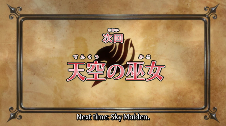 While it started off slow, I have to say this episode really sold me on this arc, and the anime in general with the animation in the fight scene alone. Too often do fighting anime rely on shoddy animation to pad for time. Fairy Tail does none of that, providing fluidity that is almost movie quality. Of course there are the common limitations of a weekly animated series, but to see them put the extra effort into their work really fills me with confidence that whether it continues or ends this season, Fairy Tail is one of the higher quality action adventure anime series out there.