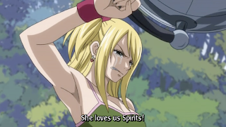 Gray, who obviously isn’t really Gray, transforms into Lucy and proceeds to flash her…umm… borrowed assets. This sounds pretty fanservicy, but it really isn’t that bad, for those of you that don’t like fanservice. And for those of you that do like fanservice, sorry but it isn’t ever brought into focus.