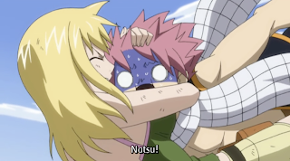 Elsewhere, Lucy wakes up bandaged, and wearing new clothes. She discovers that Virgo came to the world under her own magic power, and gave her and Natsu a matching set of clothes. Natsu thanks Lucy for helping him, and Lucy’s blush is amusing enough, without the introduction of the anime only running gag.