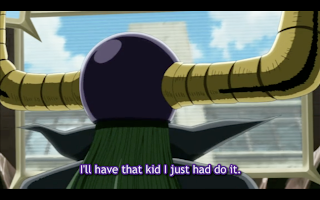 After a chase scene that climaxes in Beel throwing a tantrum when some of Oga’s blood gets on him. Oga manages to miraculously stop Beel’s tantrum, something Hilda said only the Lord of Hell could do, right as a high voltage power cable tower is about to fall on Beel.