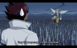 This was a fun episode, as they usually are. It focused entirely on the fight, so it seems like not much happens, but as far as fights go it’s pretty good. Mashima has a talent for finding weaknesses for his characters to exploit. Granted this doesn’t always work out the way he wants, but it isn’t too shabby, and this was one of the better examples.