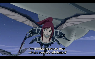 Natsu has another flashback to when he visited the city without sound, and remembers how he met the invisible people there and promised to defeat the one who controls dragons in order to break the spell. He of course forgets immediately after wards. He decides to try and overload the Dragonoid, and for a while it looks like it will work, but Daphne manages to absorb all the energy and her artificial dragon is left that much stronger.