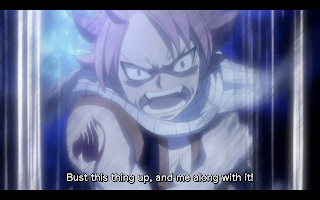 Erza and the rest of the guild manage to get in contact with Natsu, and tell him that the master told them to defend Magnolia at any cost. He tells them to destroy the Dragonoid, along with him inside it.