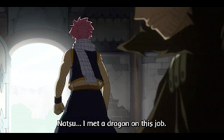 I like this because knowing that Gildarts is strong compared to all the other mages at least, and he was taken out so easily. It really builds up the mystique of the dragons, and shows exactly how powerful they are. Natsu runs off annoyed, when Gildarts convinces him not to go looking for the dragon.