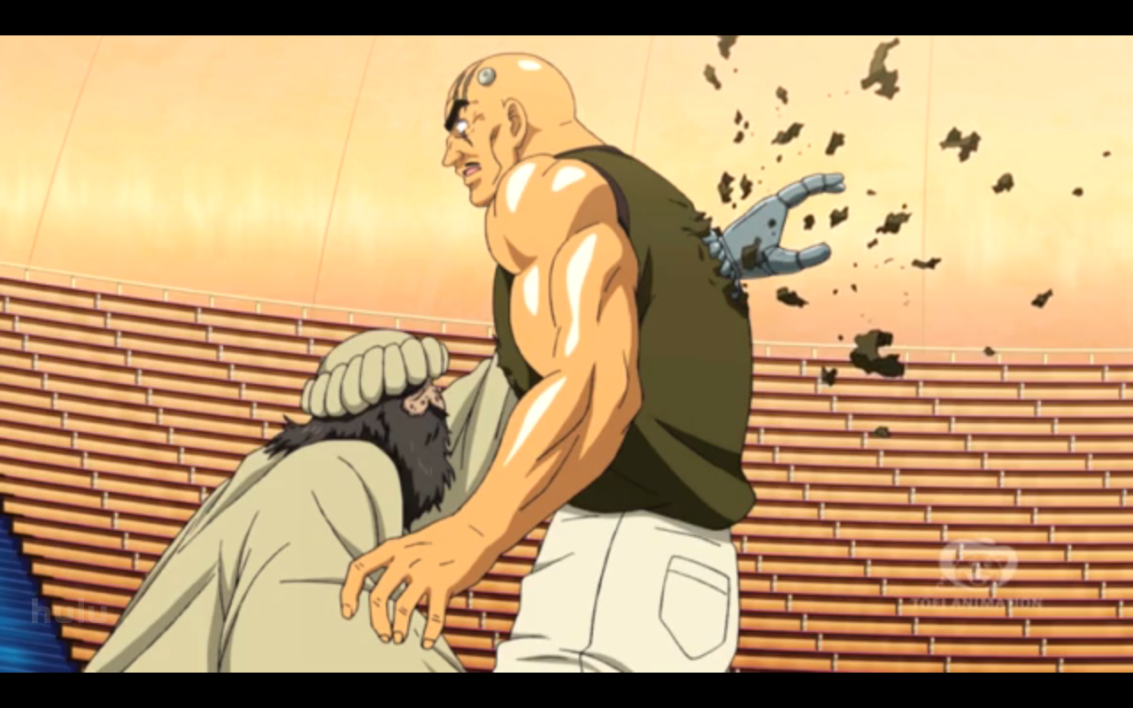 Toriko decides that birth is not a spectator sport, so he breaks the dome, scattering all the dignitaries. The baby battle wolf is born, and Tina runs down into the Colosseum to film the event. She definitely has been getting a bigger role. Kind of wonder how much of the series will be tweaked to add her. What is pretty nifty is that she is used to provide narration from the manga that otherwise couldn’t have been put in.