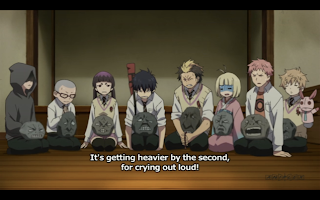 Not to mention this episode has my current favorite moment of the series. I’m a sap for cute/funny interaction between characters, and the head bump between Rin and Shiemi, while painful looking, counts as one of the most oddly cute moments I’ve ever seen between two characters. While I normally consider shipping to be the devil (but it is in me, and I cannot deny it, hence why I use the hollow graphic anytime I reference shipping), I’m enjoying what I see so far. It’s cute, and promises for some drama later on. Here’s hoping it’s well written drama, and not fake drama that has turned me off from several series.