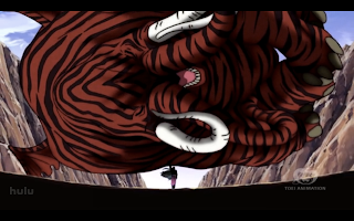 This episode also stood out to me because it emphasized that the music department is not as lacking as I originally thought. While it doesn’t have a distinct musical style like Fairy Tail it still has strong background music. Because most of the music I listen to happens to be soundtracks, I’m always paying attention to whether the music stands out in any show I watch. So far I have not been disappointed. I suspect it will only be a little longer before Toriko starts pulling out the big guns, musically speaking.