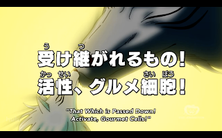 This episode also stood out to me because it emphasized that the music department is not as lacking as I originally thought. While it doesn’t have a distinct musical style like Fairy Tail it still has strong background music. Because most of the music I listen to happens to be soundtracks, I’m always paying attention to whether the music stands out in any show I watch. So far I have not been disappointed. I suspect it will only be a little longer before Toriko starts pulling out the big guns, musically speaking.