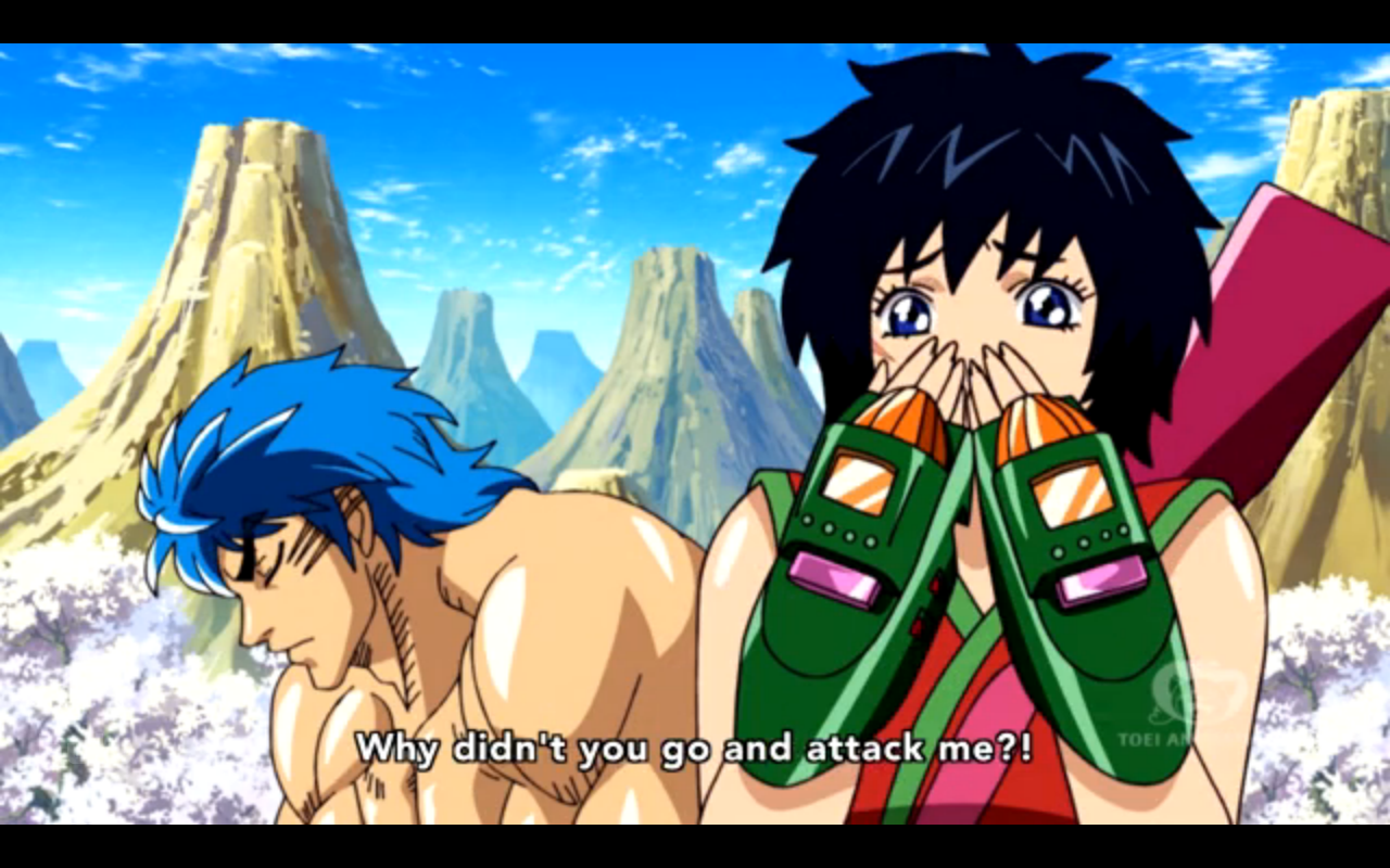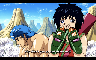 At the same time Tina, who has once again been removed from the plot, runs across the grey GT robot. Terry senses its threat, and runs away, with Tina on his back. They go off to find Toriko.
