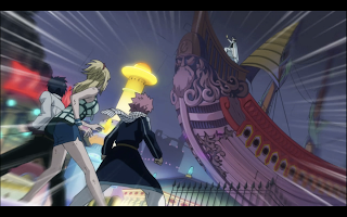 Lucy and the rest go to rescue Natsu and Wendy, while Happy goes off to find Gajeel, whose dragonslayer magic can turn the lachryma back into their friends. Lucy and Gray give Natsu and Wendy the medicine that allows them to use their magic, and once Natsu wakes up he charges off without noticing anyone else was there. He quickly runs back when he comes across the two Erzas fighting.
