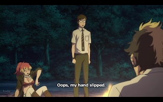 Suguro comes out of the forest, asking Rin what the blue light was. He did not see Rin using his flames, but he realized that their lanterns are attracting the moths. So they will need to extinguish them if they want to get through the forest. Shima attacks them, before breaking out of a trance.