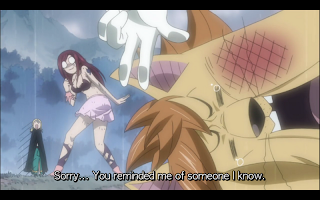 At the risk of spoilers, I have to say that she hasn’t done much in the manga past this point. Which makes me wonder what the purpose of having her back really is. Or at least that’s what I thought when my cynical barriers were up at full force when this happened in the manga. With the anime those barriers crumble. And I have to confess—all things considered—this was worth it, if just to see the reunion between the siblings. The anime built up the tragedy behind her apparent death so much more that it made the last scene of this episode work. It’s the exact opposite of what happened with Mystogan. They did the ground work, and wove this story into the whole of the main story, rather than side chapters and whatnot, making the emotional payoff all that more poignant.