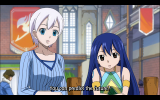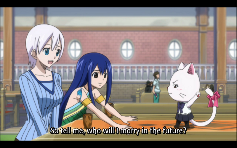 Charle shows off her ability to predict the future—which she can now control after having learned about it—to Wendy and Lisanna. Lisanna asks if Charle can predict who she will marry, but Charle says she can’t see that far into the future.