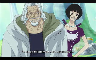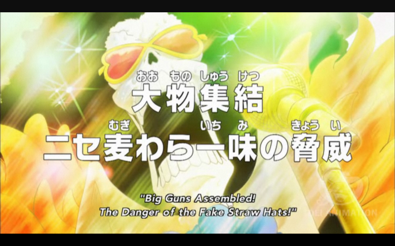 Brook plays the last piece in his concert, which turns into a full musical segment, before escaping on a flying fish. Luffy is taken to the fakes, while Rayleigh and Shakky tell the rest of the crew about the marines mobilizing. The crew gets ready to set off, ending the episode with a proper feeling of progression.