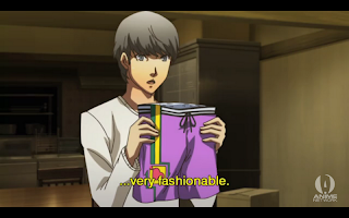 Yu just keeps getting better and better. His reaction to the horrible looking swimming trunks was out of left field and just great. He may not react emotionally to anything, but he has far more personality than a number of anime characters I could name. The writers keep his reactions low key to stay true to the game’s portrayal of the blank slate protagonist, but still get a lot of comedy mileage out of him. I can’t help but feel that swimsuit is set up for a gag later on.