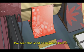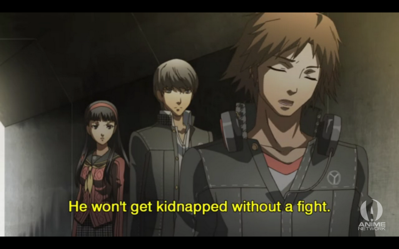 They talk to Kanji’s mother, and ask where he is. Yu notices a scarf, that looks exactly like the one they found tied into a noose in the first episode. After they leave they see Kanji talking to the guy from earlier. The guy wants to meet with Kanji later, and Kanji is flustered, wondering why a guy wants to meet with him. He sees the group watching him, and chases them off.