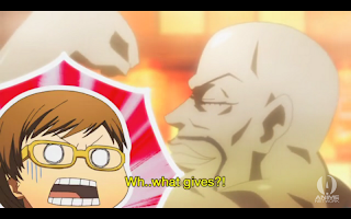 Besides being a hilarious episode, and I don’t use that word very often, there was a good deal of story going on. Unlike Yukiko’s episode this one found a good balance of action scenes and build up to the action. We don’t learn all that much about Kanji’s past, and what we do learn is done without using flashbacks, which makes for a stronger episode. And while the jokes may be lowbrow, Kanji’s inner turmoil is easily the most interesting out of the main cast so far. The concept of his possible attraction to men is dealt with well enough, but the episode takes most of that the game. And adds gay jokes.