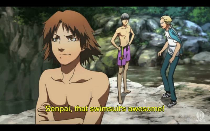 This was one of my favorite parts in the game, but it looks like the anime kind of…gummed it up. Them buying the guys food sort of messes up the swimsuit part (as you pointed out) as well as one of the funniest parts in that trip (where Yosuke just starts eating Kanji's food because Youske is a massive asshole).