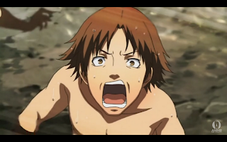 Fortunately it’s all for comedy, so the guys get kicked off the twenty foot cliff into the water… Jeez. And then Morooka pukes upstream. And merriment is had by all.
