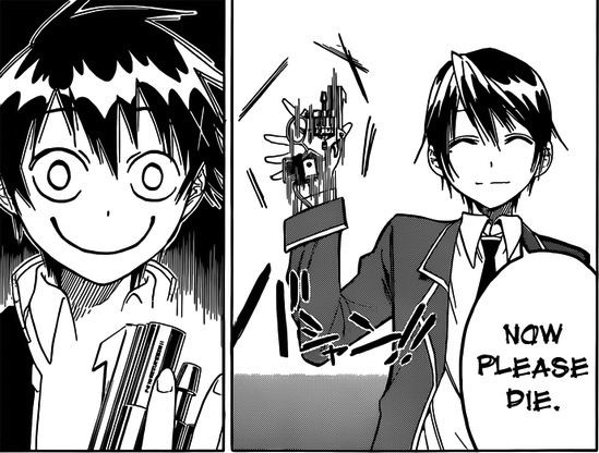 About the faces, it's true. As I remember Beelzebub for its puns, I remember Nisekoi for its faces. If this series could not only go past the twenty-five chapter limit and become an on-going series, it would one day get itself it's own anime. I would love to see that happen.